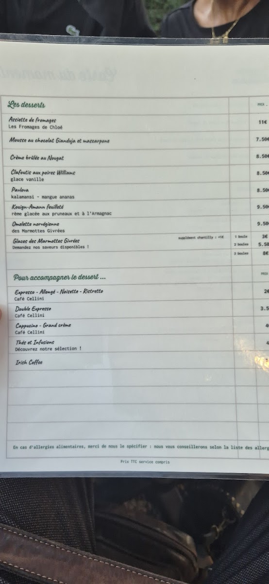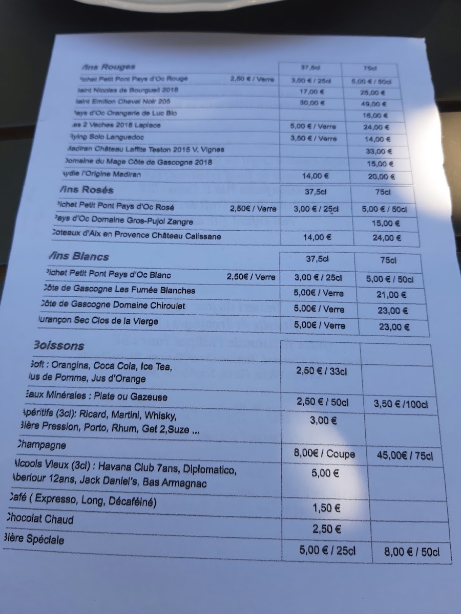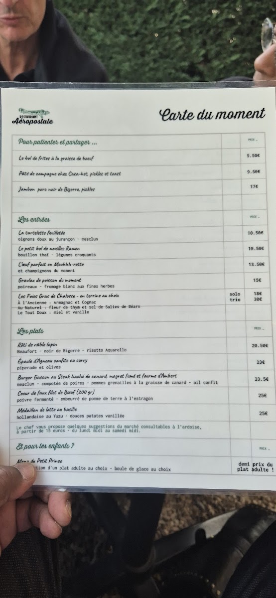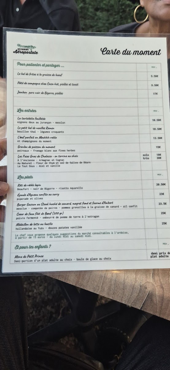 Restaurant L'aéropostale Menu